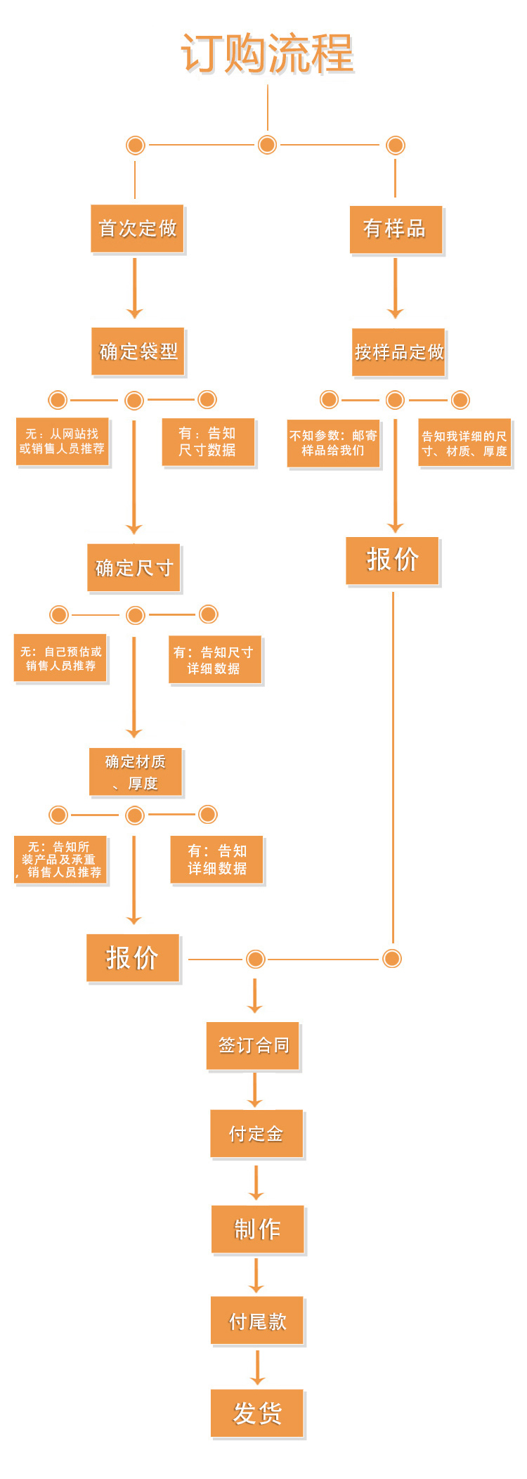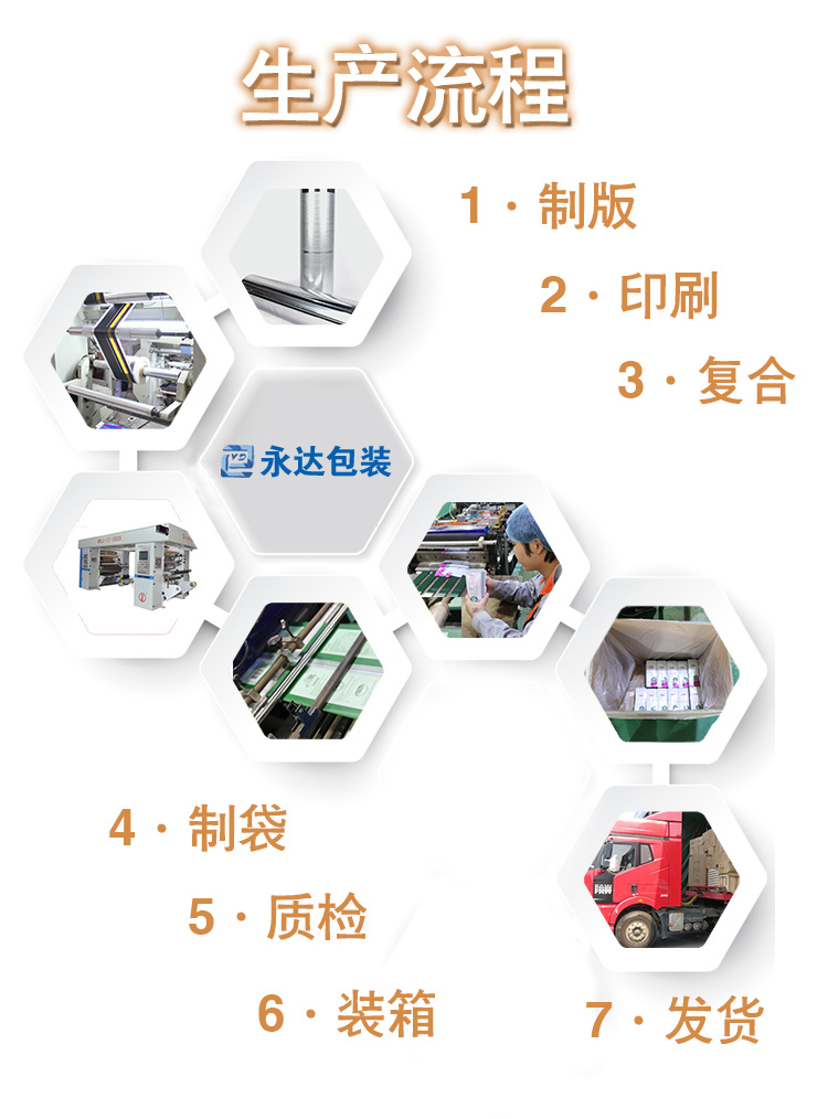 起訂量:起訂量是根據(jù)包裝袋的具體尺寸去計算的,一卷材料所生產(chǎn)出的包裝袋的數(shù)量即為最低起訂量,請確定尺寸后咨詢銷售人員。量大價格更優(yōu)惠。 版費: 包裝袋如果印刷,就需要制作版輥,版輥的費用稱之為版費。根據(jù)印刷設(shè)計圖在版輥上刻圖案,一個顏色需要刻一個版輥,所以設(shè)計圖需要幾個顏色印刷出來,就需要刻幾個版,總的版費就乘以幾。舉個例子,如果版費是350元一個色,設(shè)計圖需要5個顏色印刷出來,那總的版費就是350*5=1750元。在設(shè)計圖和尺寸不變的前提下,版費只收取一次。 生產(chǎn)周期:生產(chǎn)周期一般是7-10天,具體請咨詢銷售人員。